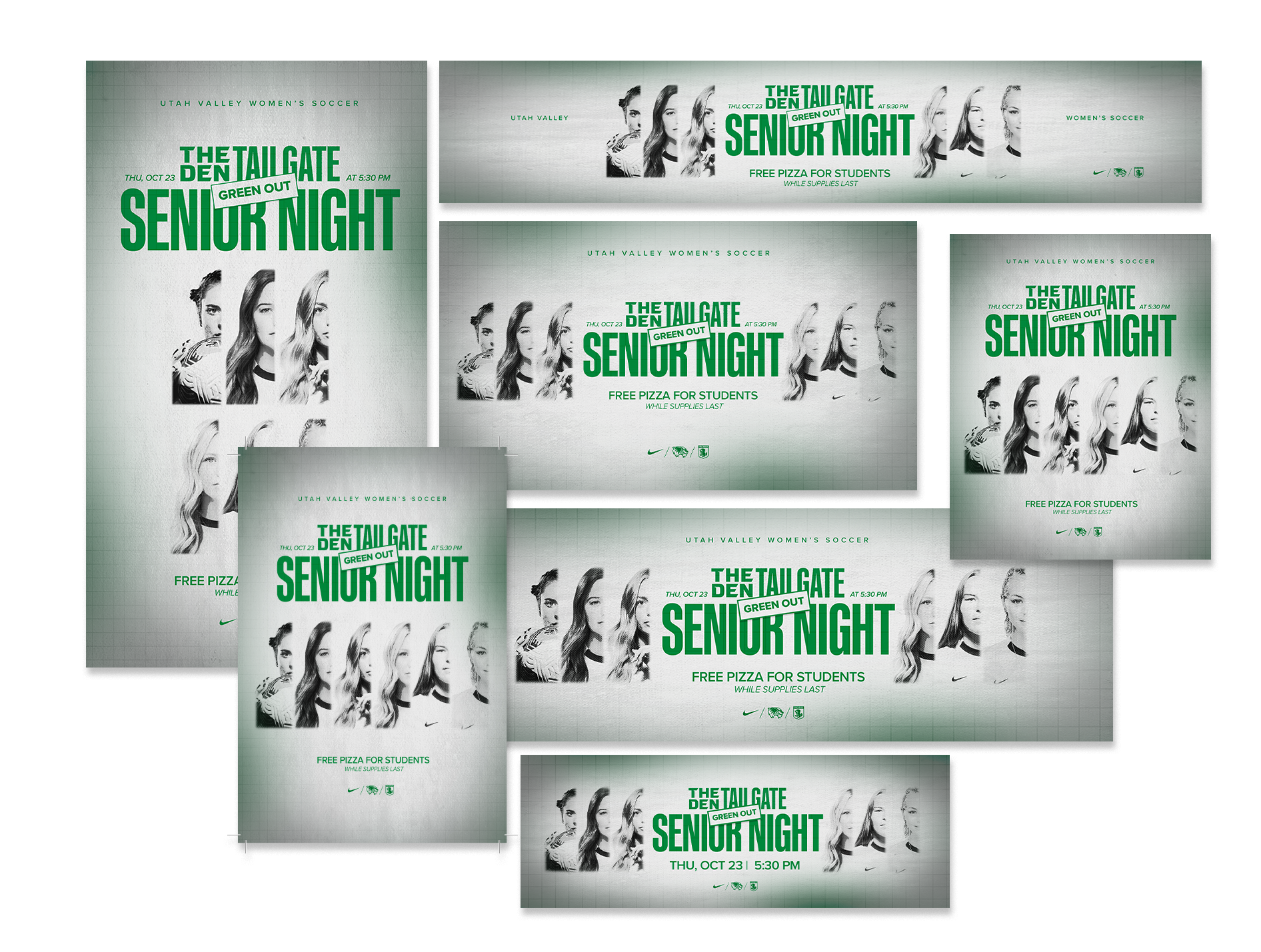 Within my work for UVU Athletics, I have designed digital and print marketing materials, including social media graphics, event promotions, and sponsorship assets. I ensure brand consistency by following UVU and sponsor guidelines while creating visually engaging content.